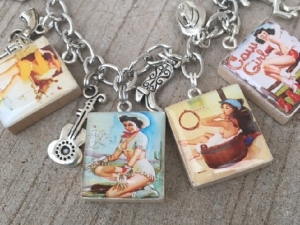 GO GREEN with an eye-catching charm bracelet designed using authentic recycled Scrabble tiles! .