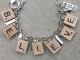 This original design charm bracelet uses authentic upcycled Scrabble tiles. The wood tiles spell "BELIEVE"on one side with vibrant artwork of motivational phrases on the reverse. The tiles are coated with an epoxy glaze that provides durable protection and a glass-like finish. Silver plate chain link bracelet is 7.5 inches long and has a lobster claw clasp. (Size can be adjusted--just ask!)