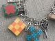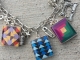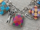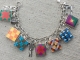 This charm bracelet features a quilting theme with colorful artwork of quilting blocks in popular patterns.