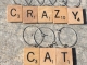 Reversible wine charms are set on Scrabble tiles that spell "CRAZY CAT" on one side and feature colorful artwork showcasing playful kitties all dressed up in steampunk wear. The tiles are coated with an epoxy glaze that provide durable protection and a glass-like finish. It's like getting two sets of wine charms for one price!